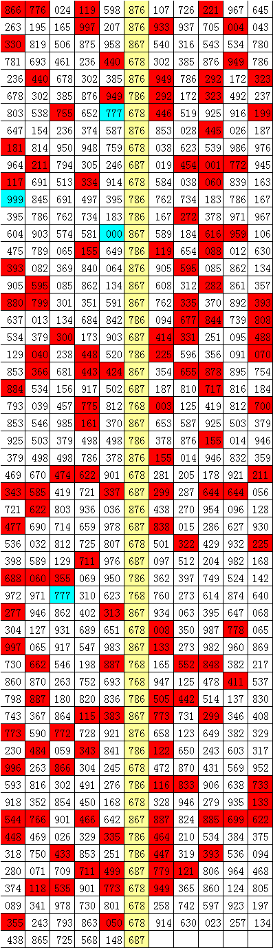 在以上统计表中,组选号码678开出之后,其下期组三号码出现22次,组六号码出现32次。其中,下期奖号有22期无重号,有32期开出重号,本期展望重号开出,看好开出组六号码。