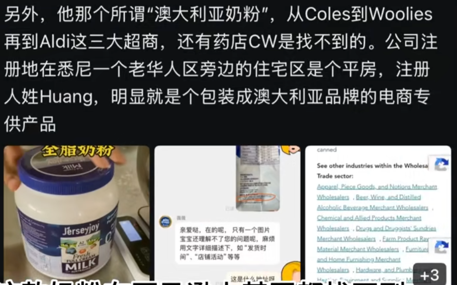 “澳洲奶粉”,是亚马逊上齐找不到的,注册东说念主姓huang的,注册地在澳州住户区的“闻名品牌”。